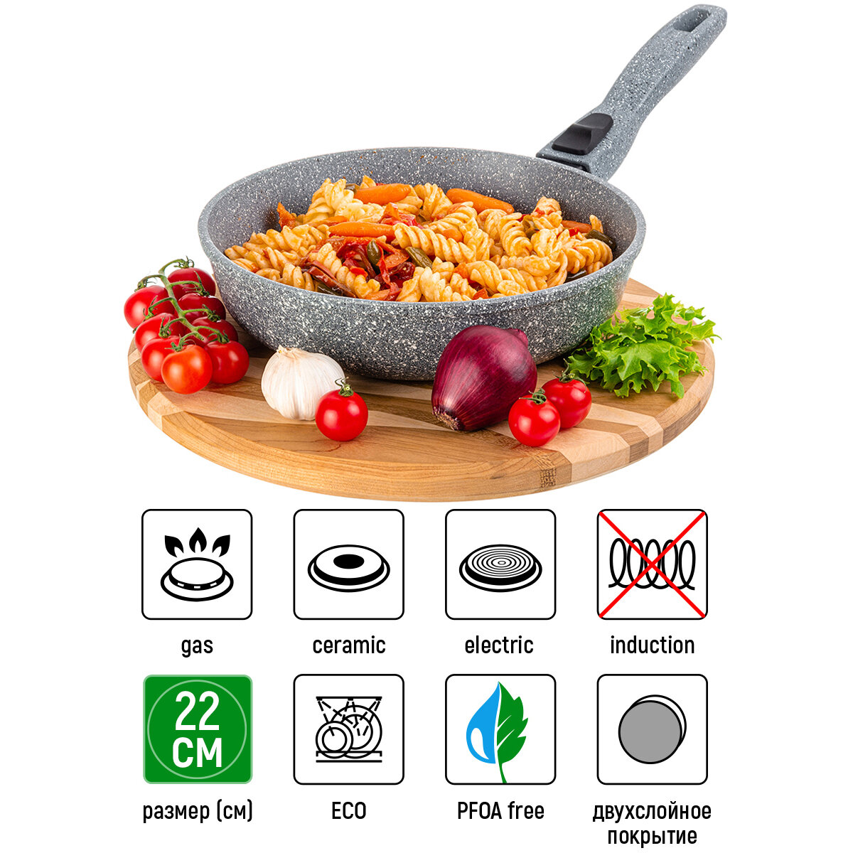 Сковорода глубокая 22 см Elan Gallery гармония вкуса Серый мрамор без крышки, съёмная ручка информация: