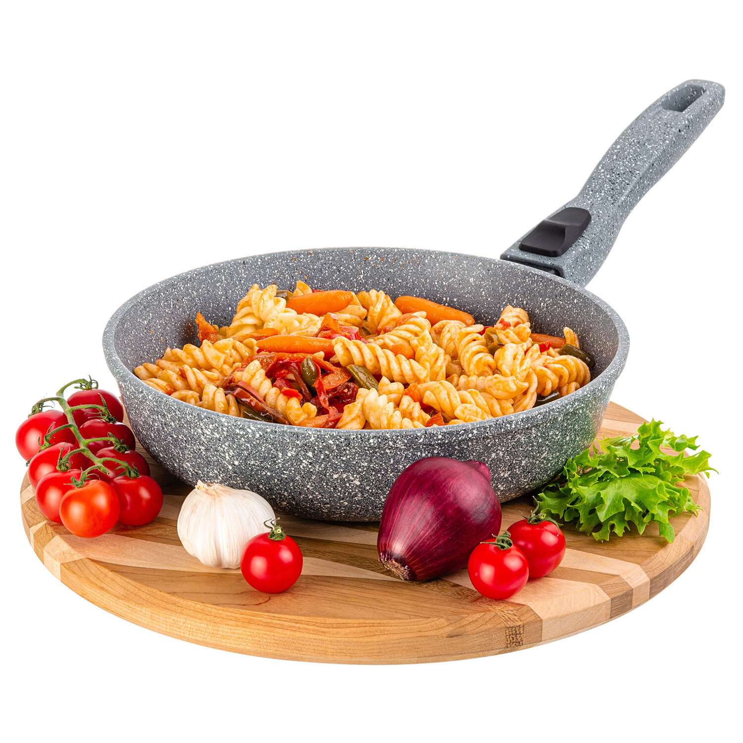 Отзывы на Сковорода глубокая 22 см Elan Gallery гармония вкуса Серый мрамор без крышки, съёмная ручка