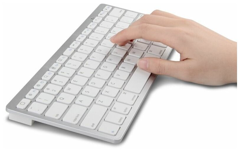 10 цен на Беспроводная Bluetooth клавиатура Keyboard WOGOW белая, Русская и Английская раскладка