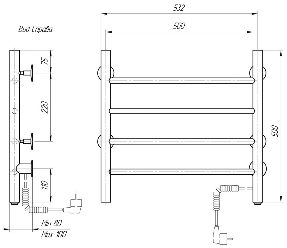 Полотенцесушитель электрический Маргроид В10 30х80, таймер, черный матовый