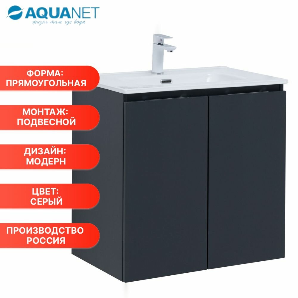 Тумба с раковиной Aquanet Алвита new серый 00303922 46 388 ₽