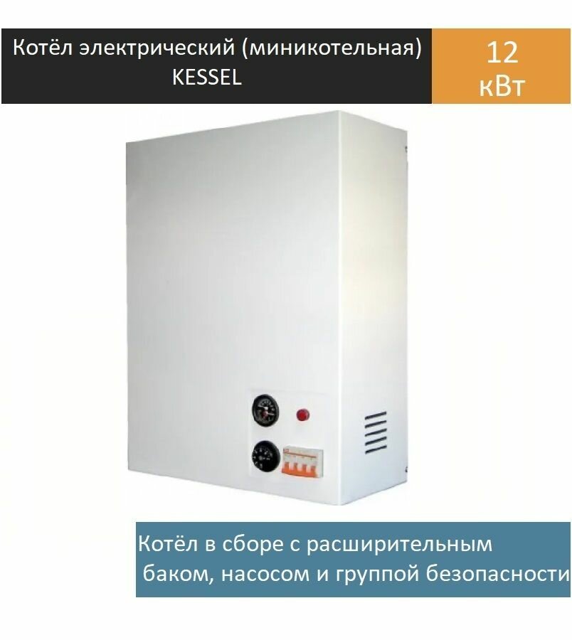 Котел электрический в сборе Kessel ЭВП 12Квт, насос циркуляционный 25-60, группа безопасности, расширительный бак с кронштейном