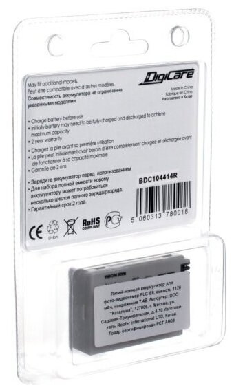 Аккумулятор DigiCare PLC-E8 (LP-E8 для EOS 600D, 650D, 700D) информация:
