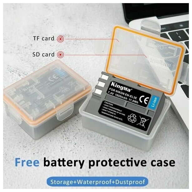 Аккумулятор KingMa EN-EL3e для камер Nikon, 1600 mAh информация: