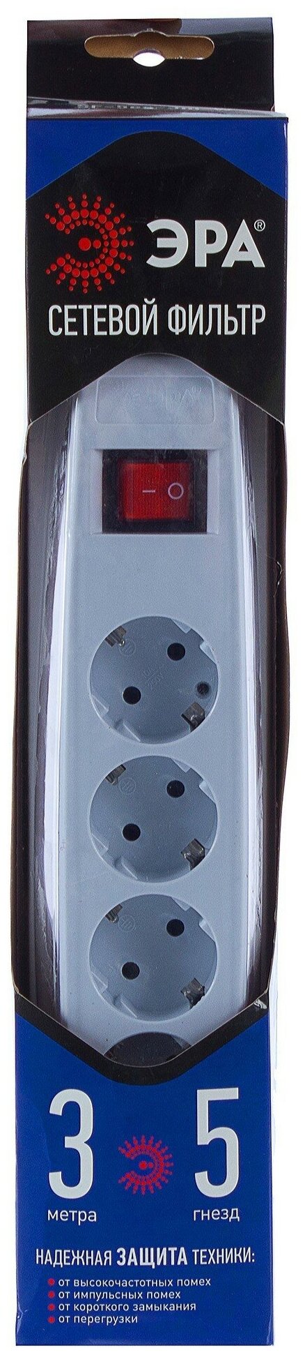10 цен на Сетевой фильтр Эра SF 5 розеток с заземлением 3х0.75 мм 3 м 2200 Вт цвет белый