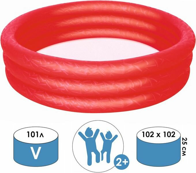 Бассейн детский надувной 102 см х 25 см 101 л Цвет Красный BESTWAY 51024_RD информация: