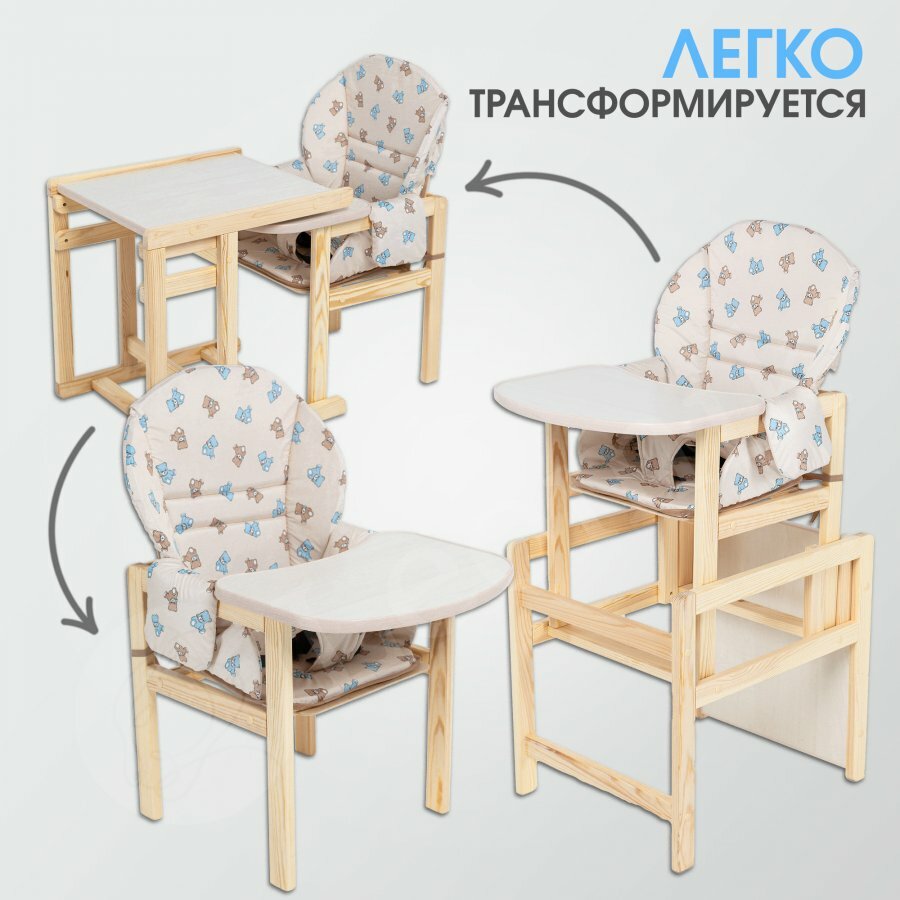 Стульчик для кормления детский с чехлом / Стол и стул трансформер 2 в 1 натуральное дерево/ Антошка-Алиса/ Голубые мишки информация: