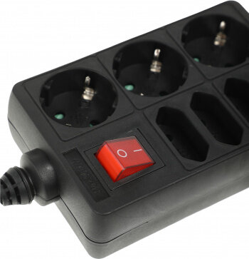 HAMA Сетевой удлинитель Hama Colour 1.5м (10розеток) black с выключателем/"защита от детей" (H-108895)
