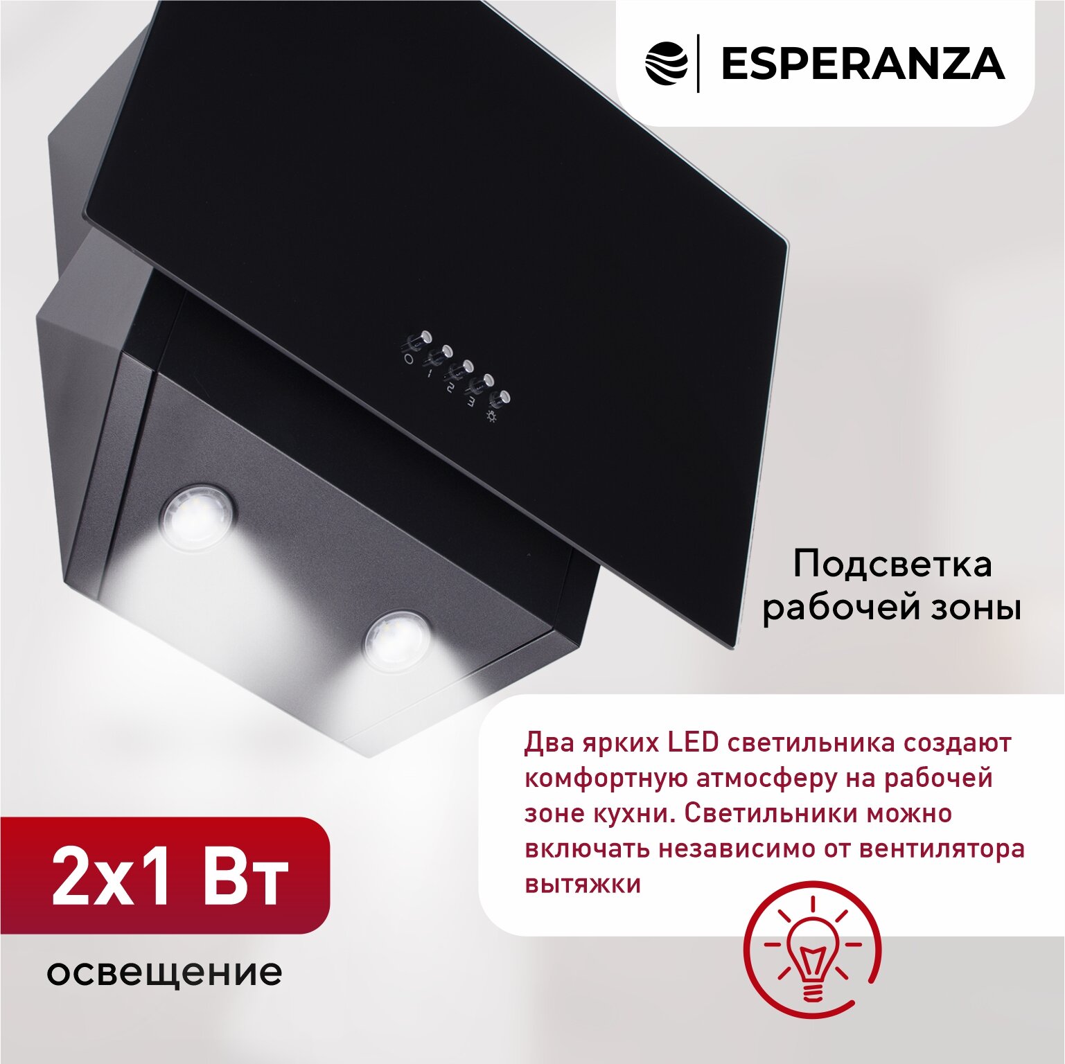 Наклонная вытяжка 50 см ESPERANZA RHA50G05 B информация: