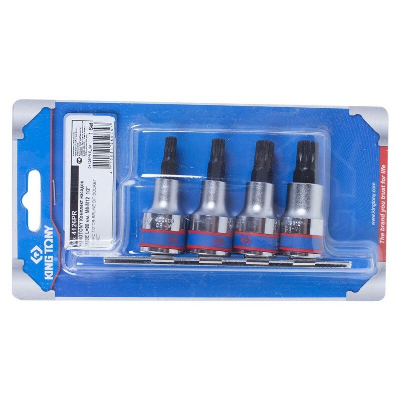 Набор торцевых насадок 1/2", SPLINE, М6-М12, L = 80 мм, 4 предмета KING TONY 4126PR информация: