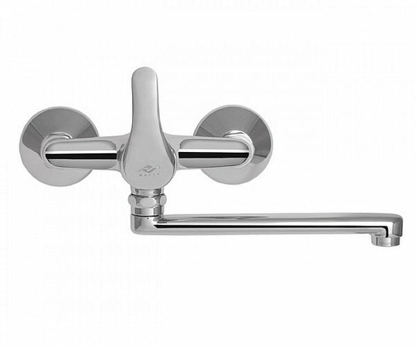 Смеситель на раковину настенный Эверест B46-350 с круглым поворотным изливом, кран-буксы 1/2", хром