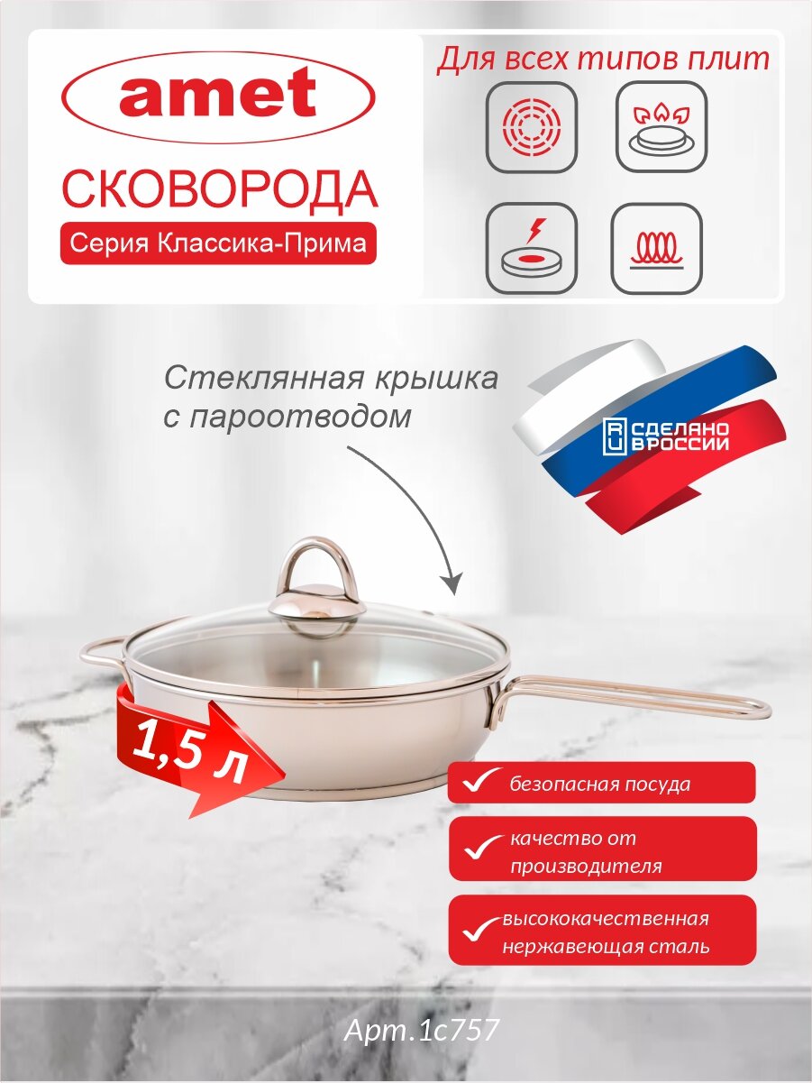 Сковорода 1,5л мет.крышка "Классика-Прима" ТРС-3 (6) 1с746 информация: