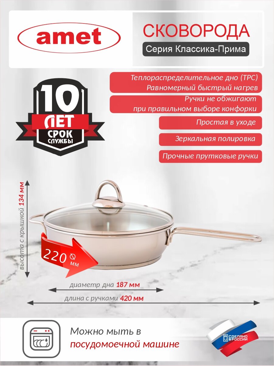 10 цен на Сковорода 1,5л мет.крышка "Классика-Прима" ТРС-3 (6) 1с746