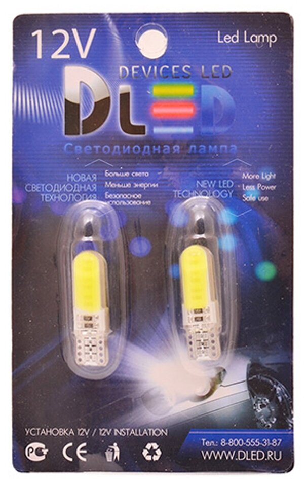 Отзывы на Светодиодная автомобильная лампа T10 - W5W - 2 COB-PCB (Комплект 2 лампы) Белый