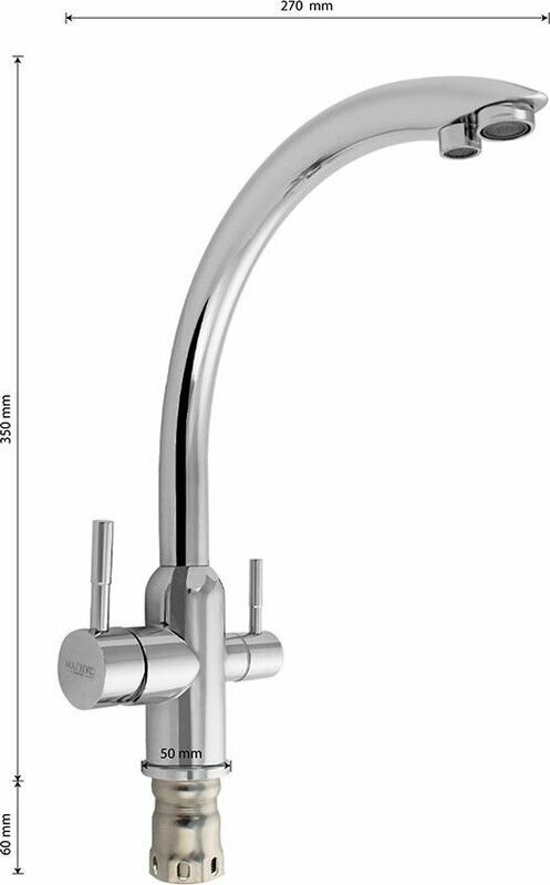 Магнус - Смеситель кухонный, хромированный, С-образный излив, шаровый, с двойным выпуском воды для фильтра, из нержавеющей стали марки 304 информация:
