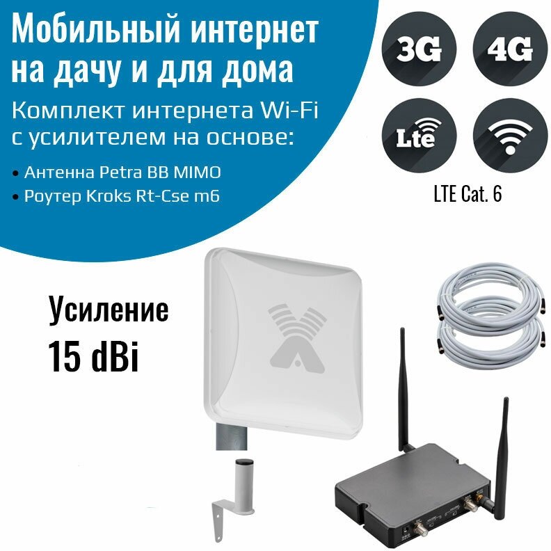 Комплект интернет 3G/4G Дача-Стандарт (Роутер Kroks Rt-Cse m6, с антенной Petra BB MIMO 15 дБ) информация: