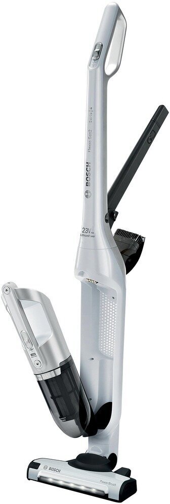 | Дополнительная информация | 2 в 1: Съемный портативный пылесос и стандартный беспроводной; ионная технология от Bosch обеспечивает сверх продолжительное время работы для стабильно безупречного результата и быструю зарядку аккумулятора; турбощетка PowerBrush с LED подсветкой подходит для уборки любых напольных покрытий; два уровня регулировки мощности |