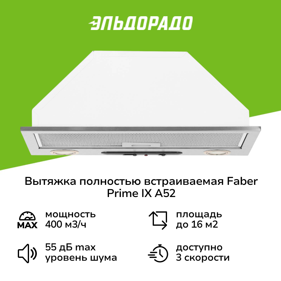 Вытяжка полностью встраиваемая Faber PRIME IX A52 информация: