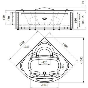 Акриловая ванна Radomir Сорренто 150x150 с каркасом, фронтальной панелью, сливом-переливом (1-01-2-0-9-037К) информация: