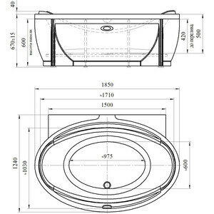 Акриловая ванна Radomir Лагуна 185х125 с каркасом, фронтальной панелью, сливом-переливом (1-01-2-0-1-026К) информация: