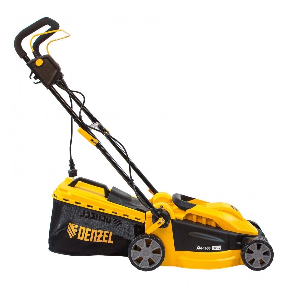 10 цен на Газонокосилка электрическая GM-1600, 1600 Вт, ширина 36 см, 3 уровя, травосборник 35 л. Denzel Denzel
