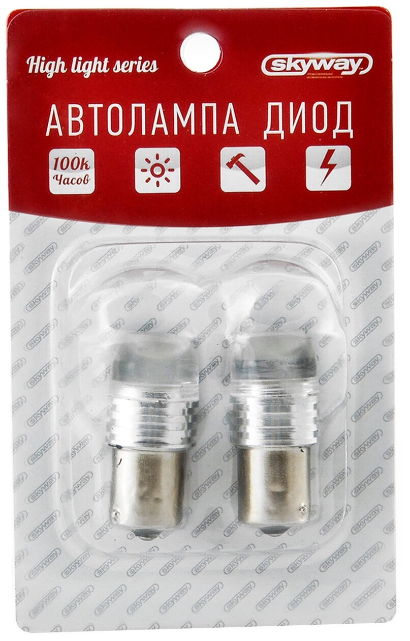 Автолампа диод S25(P21W) 12V 1 диод Блистер с цоколем 1-контактная Белая SKYWAY 2шт информация: