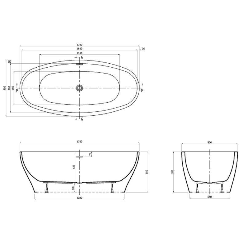 Ванна Gamma 140х70 см, акриловая, на каркасе, экран к ванне Gamma 140
