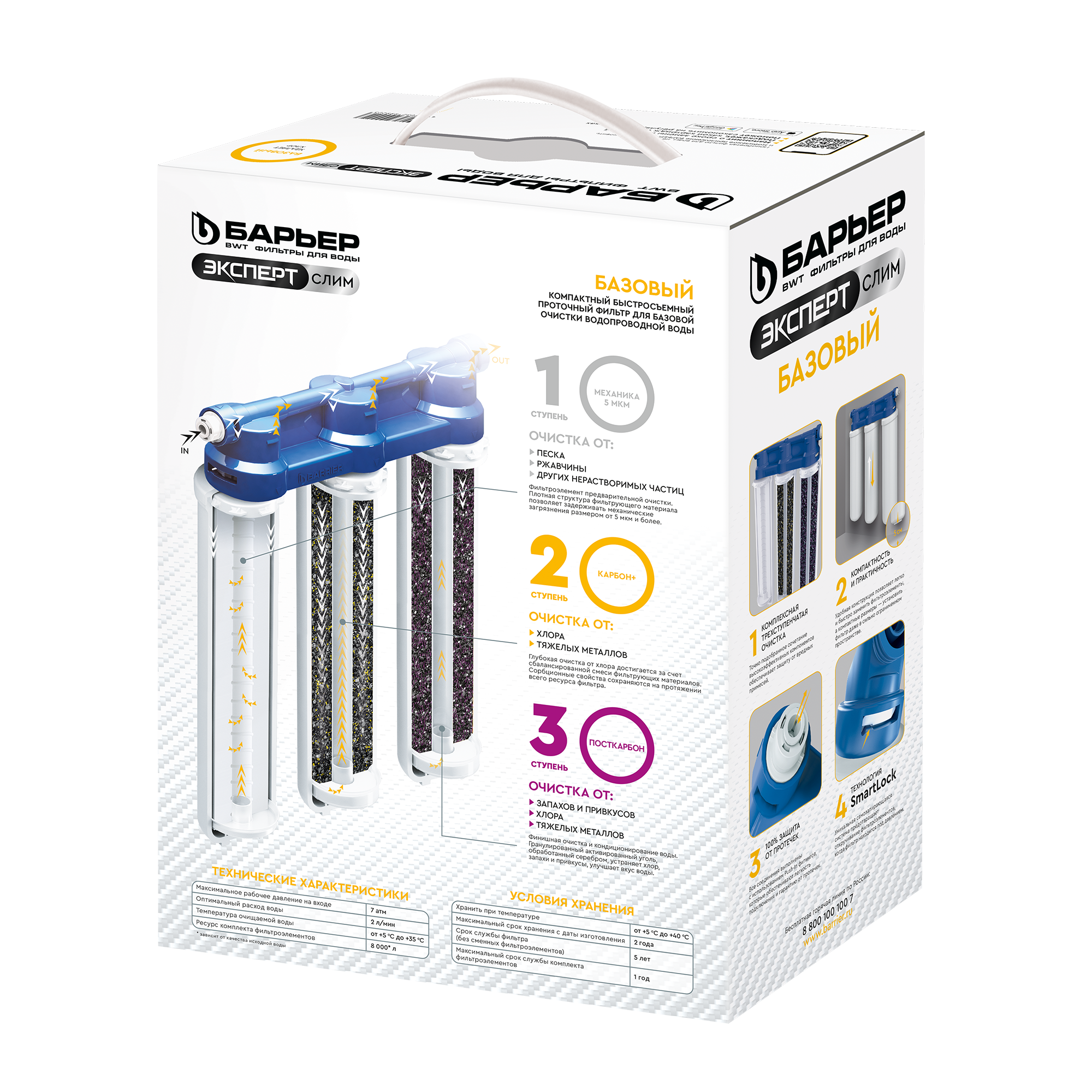 Фильтр под мойку Барьер Эксперт Slim Базовый для воды нормальной жесткости 3 ступени информация: