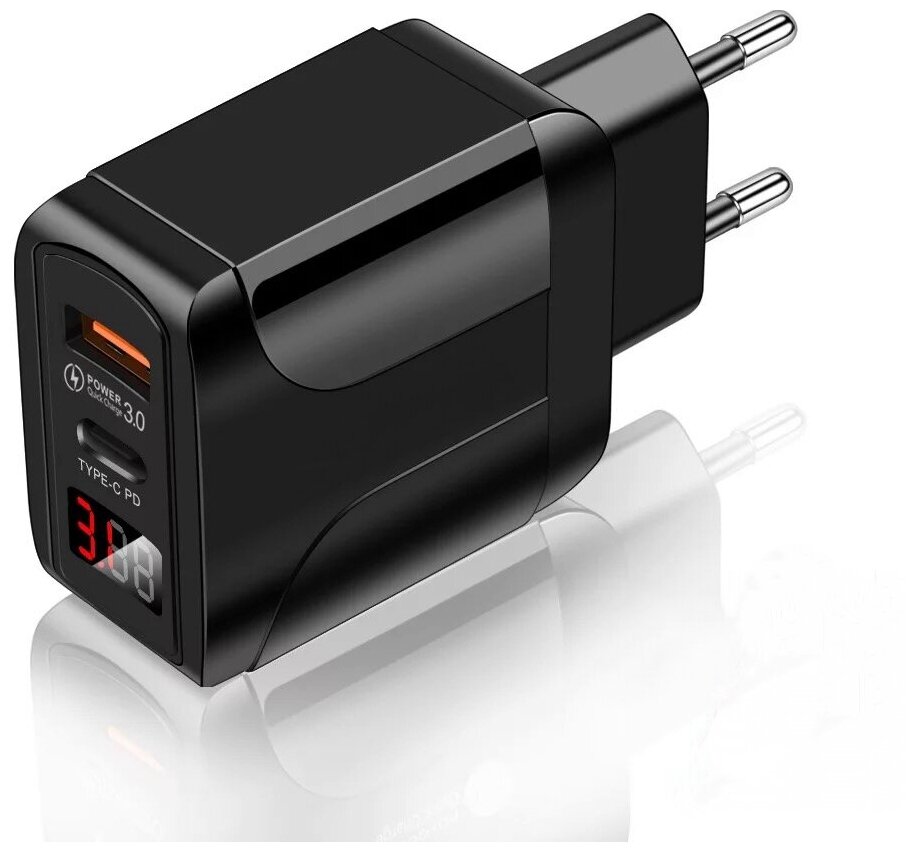 Зарядное устройство MyPads A151-624 с 2 входами USB и Type-C с LED дисплеем сетевой блок питания адаптер быстрая зарядка QC 3.0 для телефона план... информация: