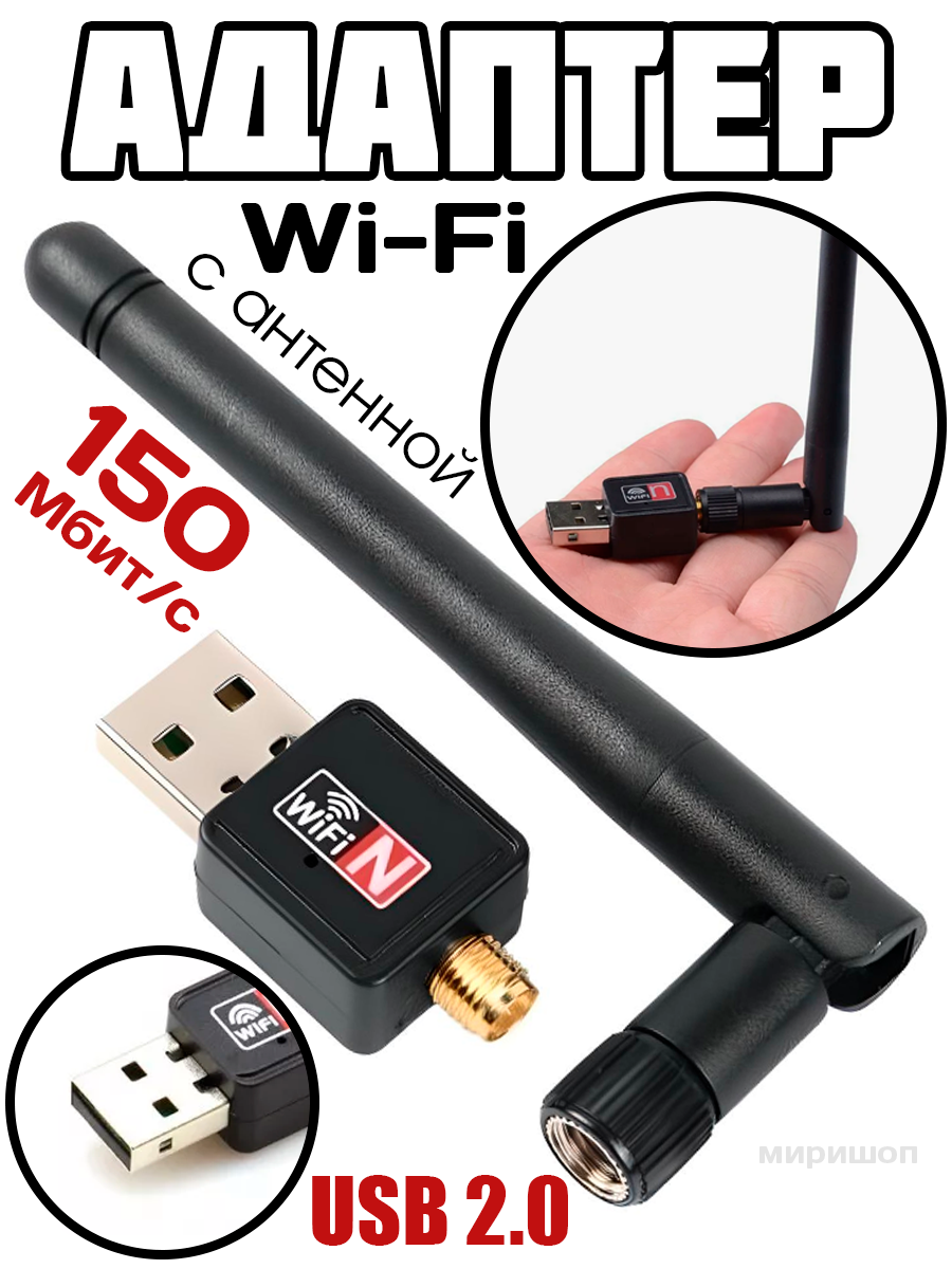 10 цен на Wi-Fi Адаптер с антенной USB 2.0, 150 Мбит/с