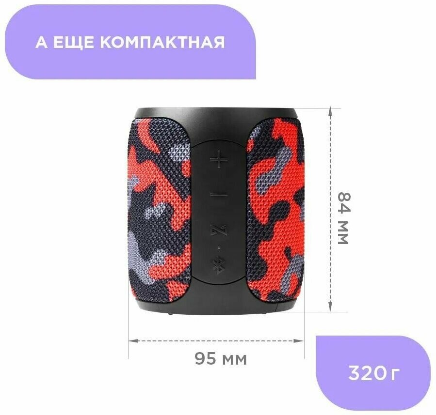 Портативная Bluetooth колонка Урал ТТ М+ Спецназ, водонепроницаемая IP67, 5 Вт Мощность, TWS, FM-радио, беспроводная