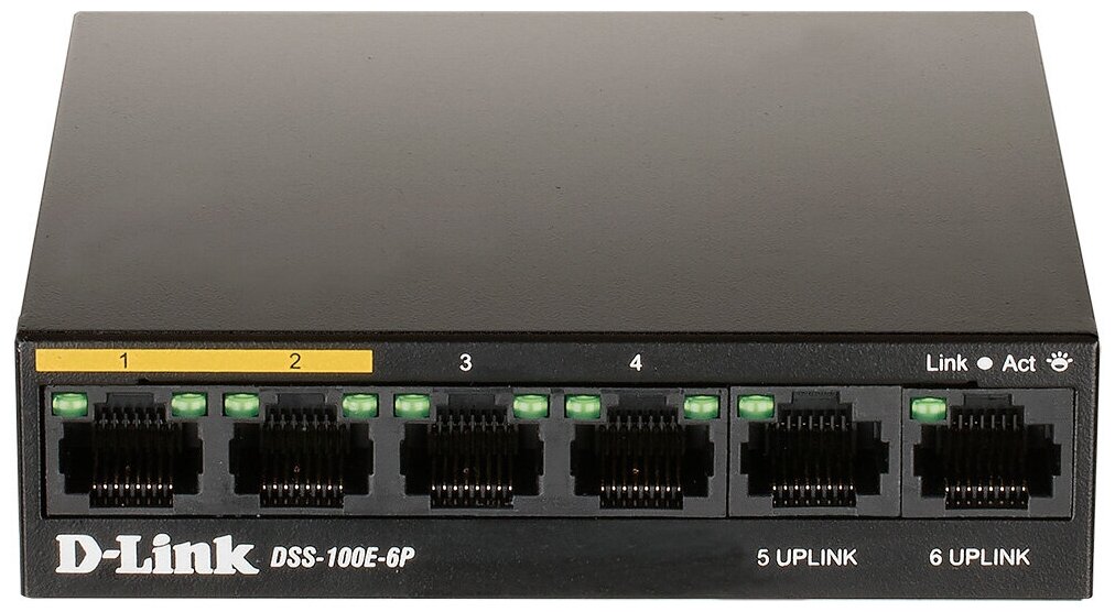 Отзывы на Коммутатор D-Link DSS-100E-6P/A1A Неуправляемый с 6 портами 10/100Base-TX (4 порта PoE 802.3af/at, PoE-бюджет 55 Вт, дальность до 250 м)