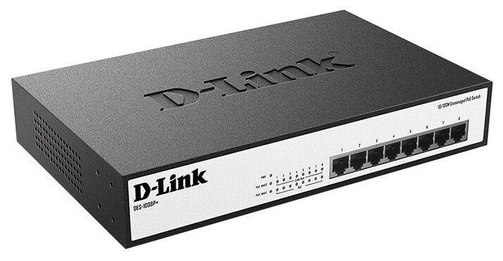 10 цен на Коммутатор D-Link DES-1008P+/A1A 8x100Mb 8PoE 140W неуправляемый