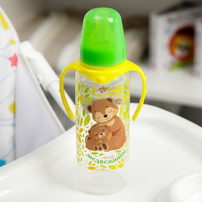 Mum&Baby Бутылочка для кормления "Мишки: мамы и малыши" 250 мл цилиндр, с ручками информация:
