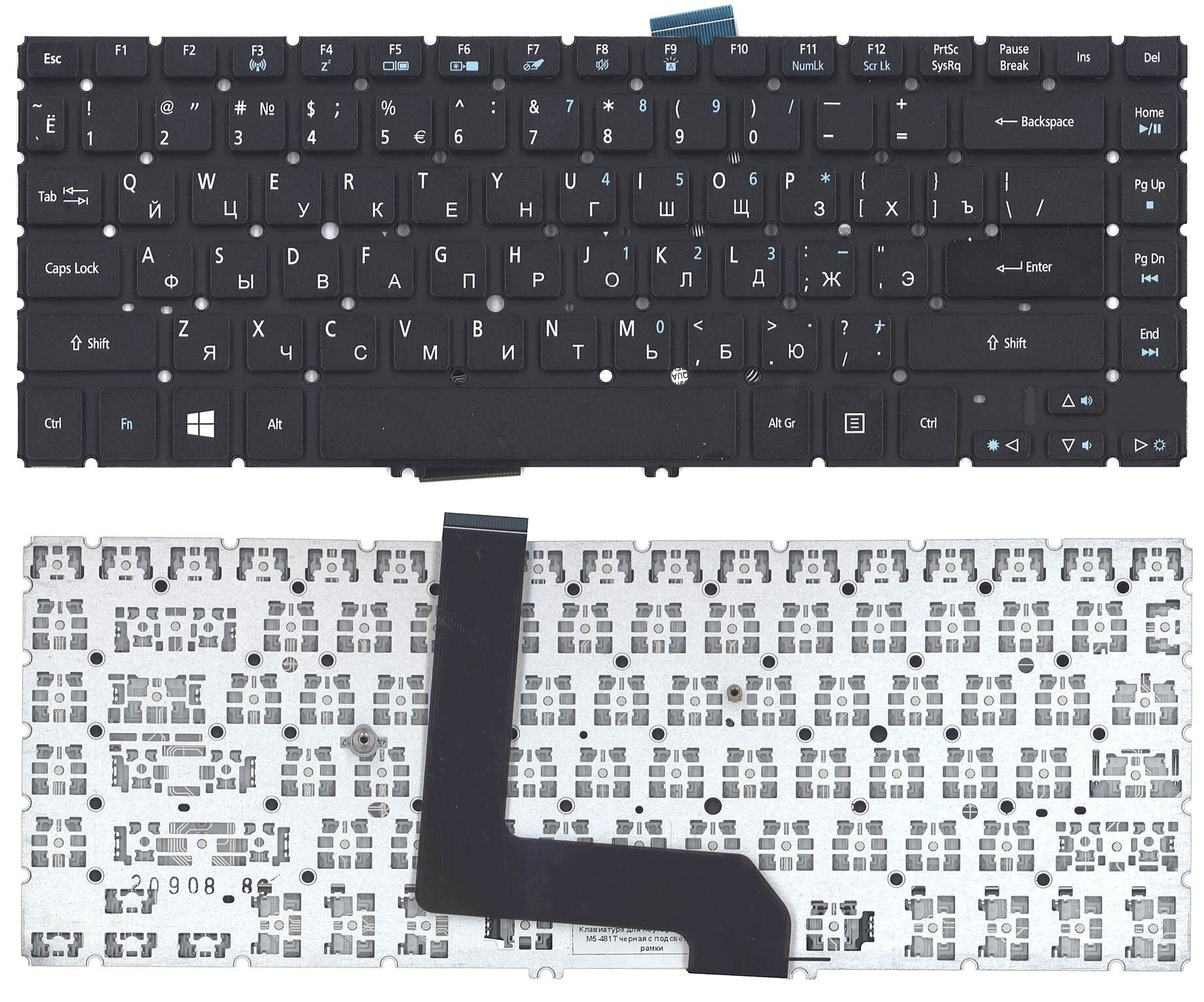 Клавиатура для ноутбука Acer NSK-R2BBQ черная c подсветкой без рамки информация:
