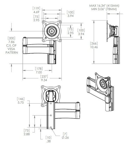 | Расстояние от стены/потолка | 78-415 мм |