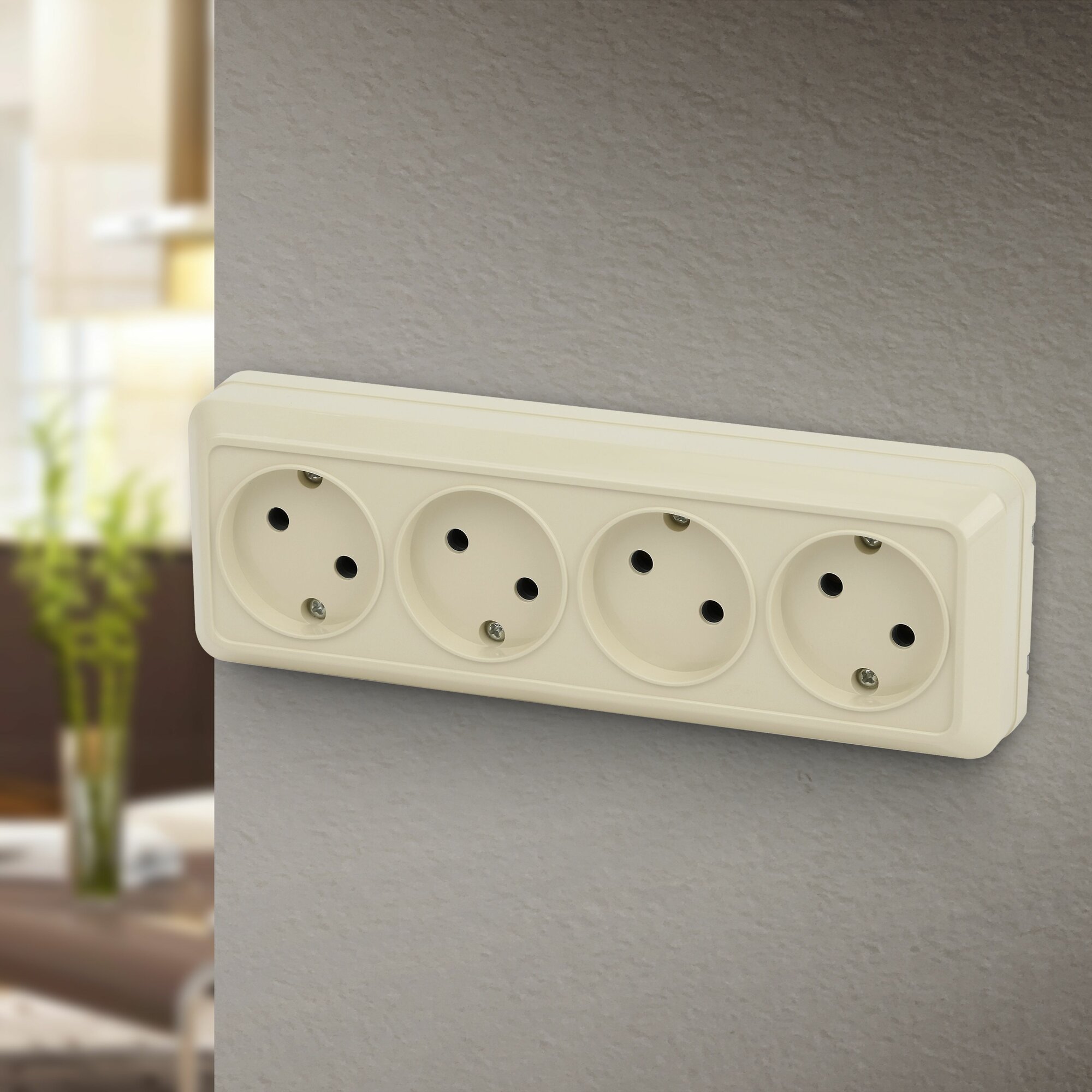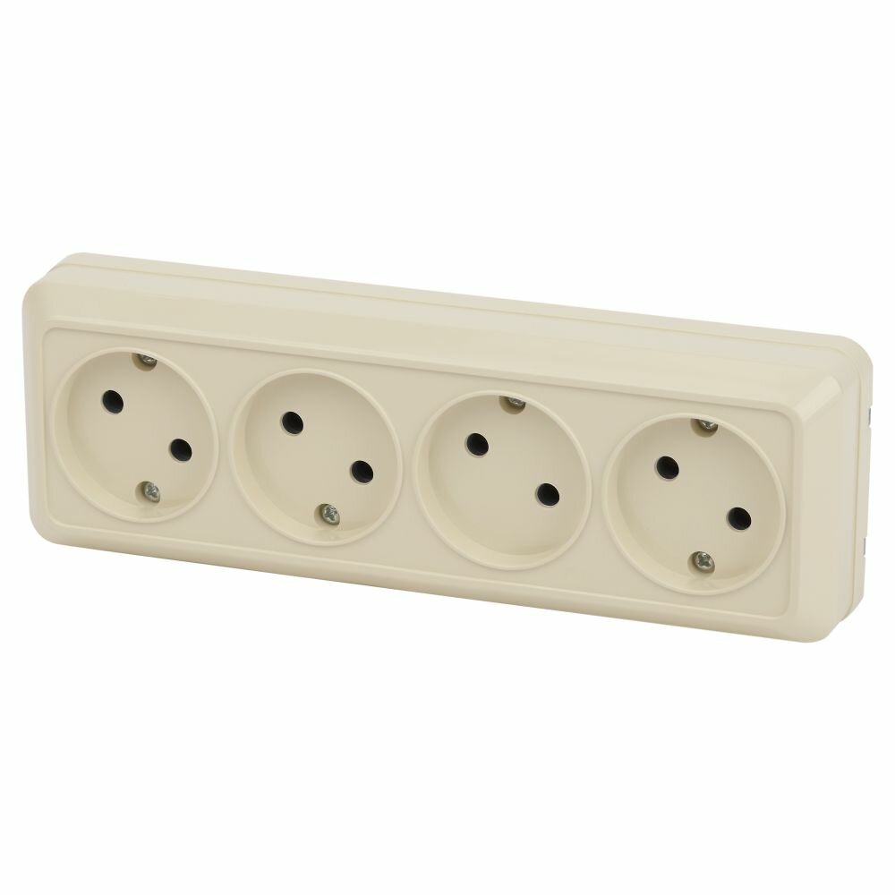 10 цен на Розетка Intro Quadro 2-207-02 без заземления четырехместная 4х2P, 16А-250В, IP20, ОУ, слоновая кость