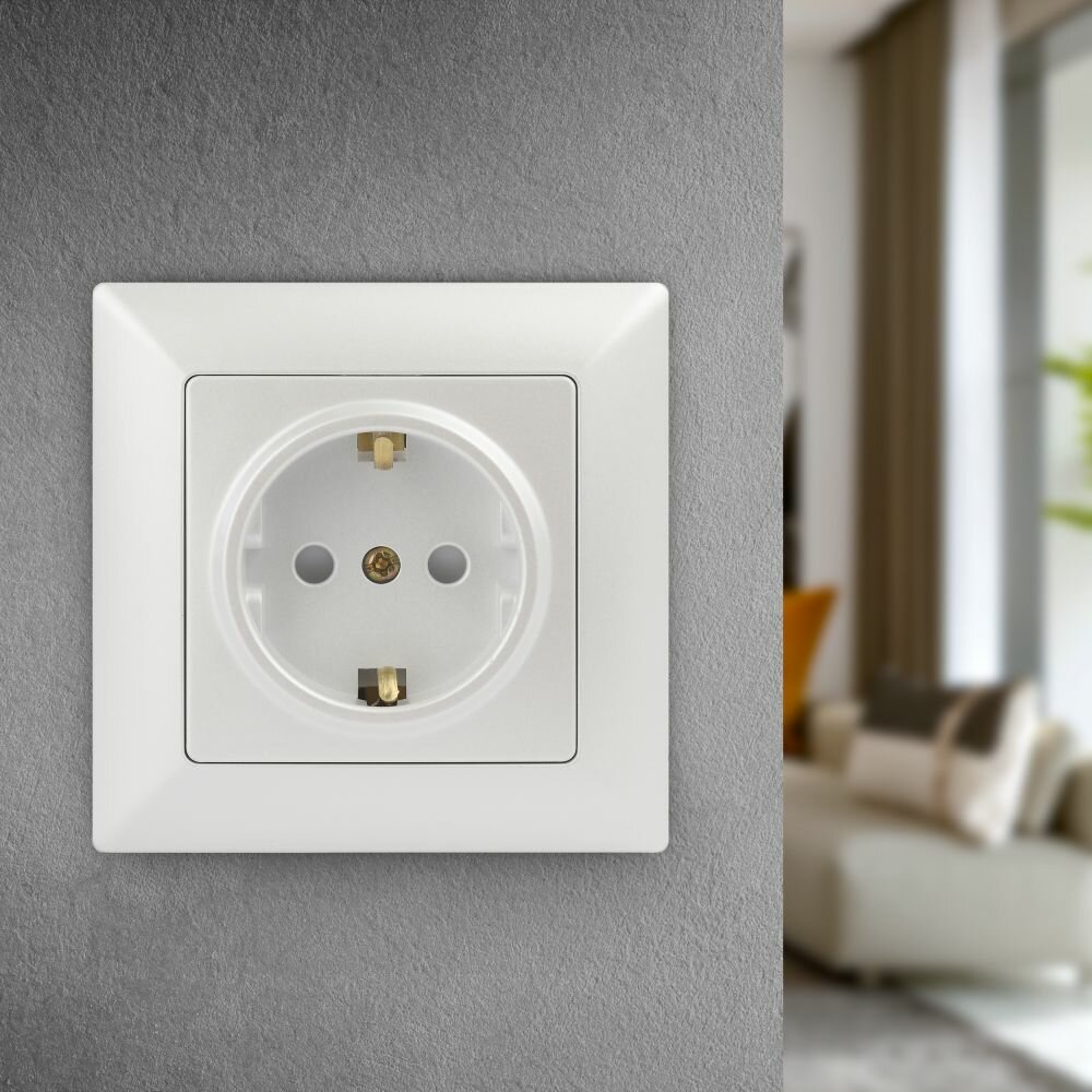 Отзывы на Розетка Intro Solo 4-206-06 с заземлением 2P+E Schuko со шторками, 16А-250В, IP20, СУ, перламутр
