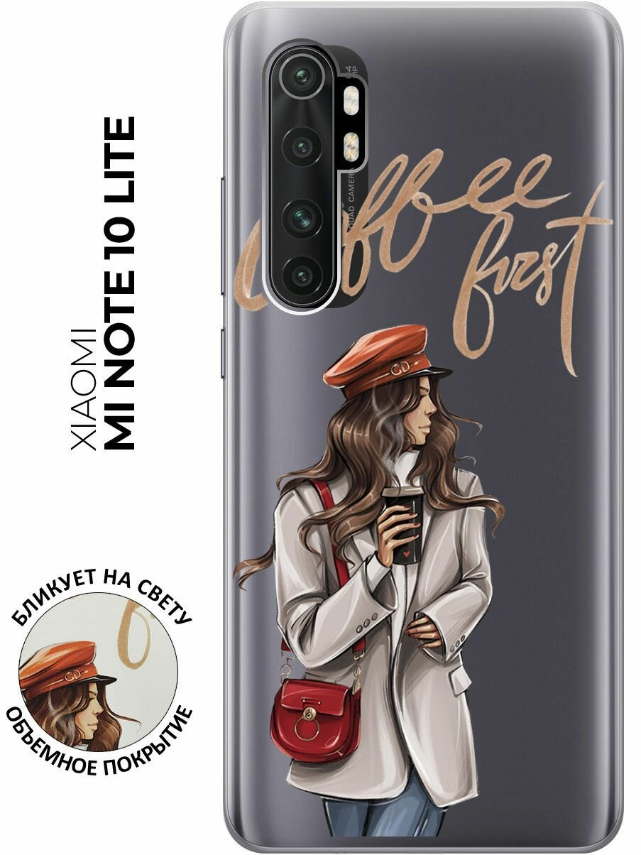 Чехол - накладка Transparent 3D для Xiaomi Mi Note 10 Lite с принтом "Cofee First" информация: