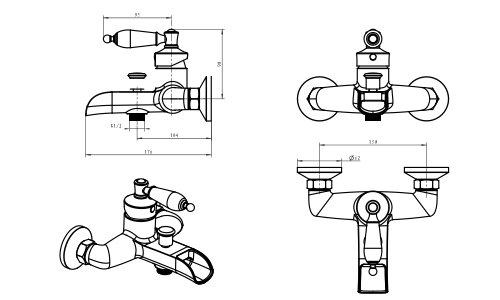 Смеситель на раковину настенный Эверест B46-350 с круглым поворотным изливом, кран-буксы 1/2", хром