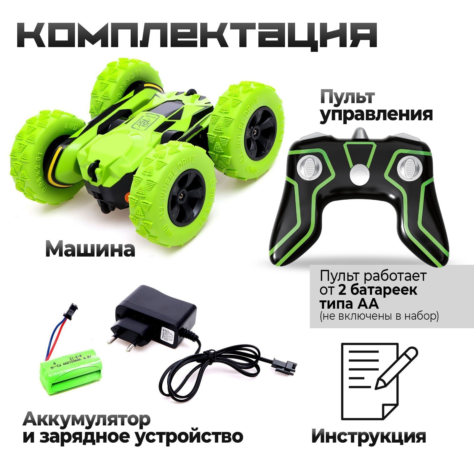 Машина-перевёртыш радиоуправляемая Трюкач, работает от аккумулятора, цвет зелёный Автоград 7364907 . информация: