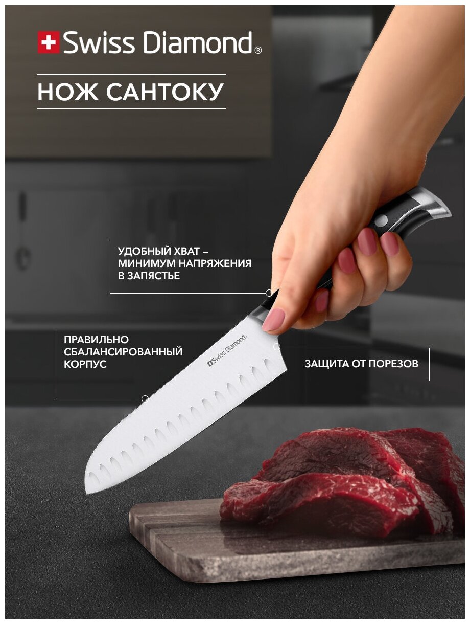 10 цен на Нож кухонный сантоку 18 см Swiss Diamond Sabie SDSKN-18