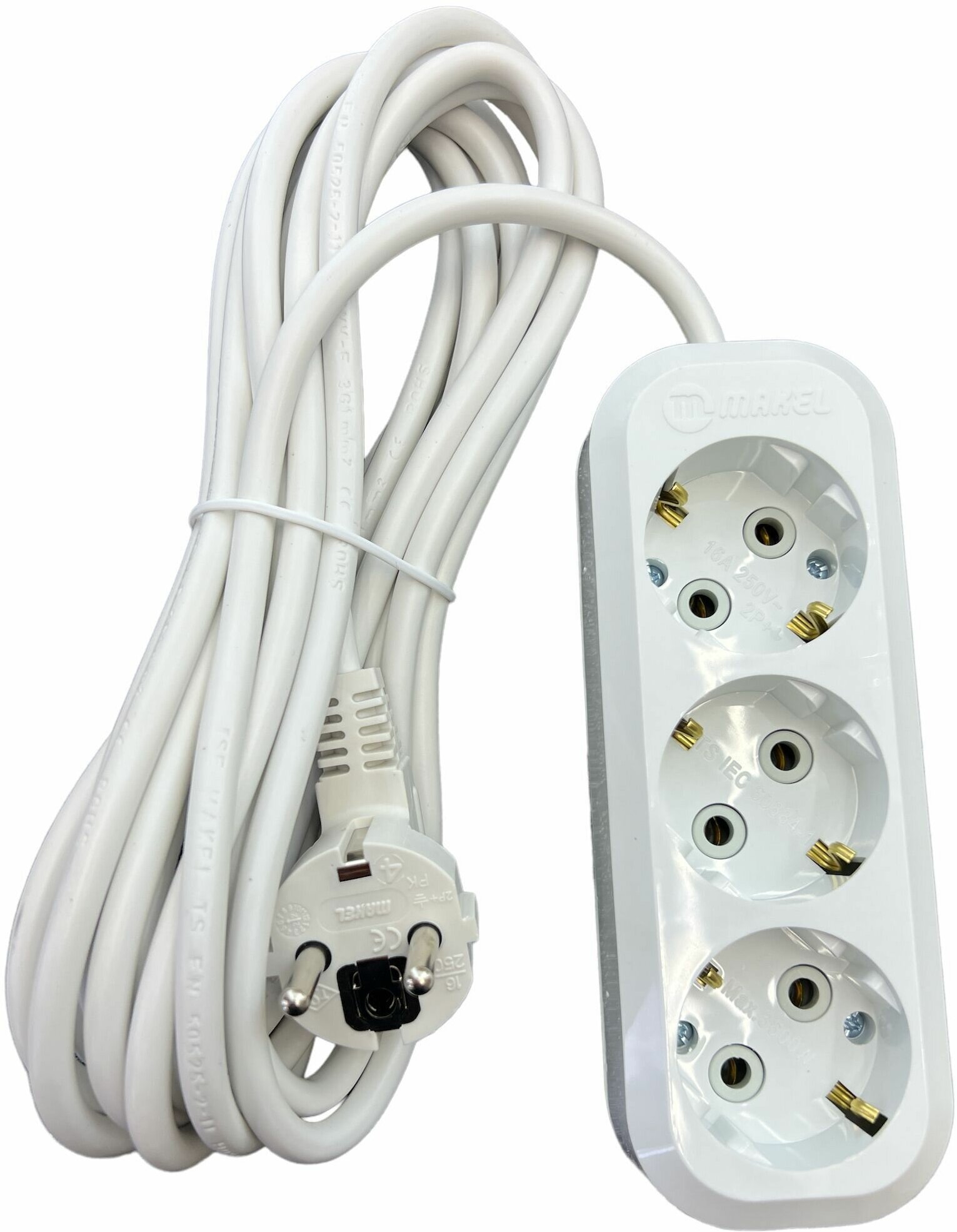 10 цен на Удлинитель бытовой Makel (MGP134) с заземлением 5 м 16 А 250 В 2,2 кВт 3 розетки ПВС 3х1 мм2 IP20 белый