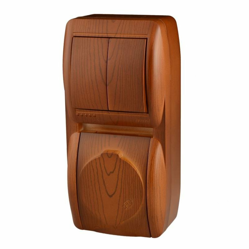 Выключатель и розетка Lezard, NATA, 2-х клавишный, с/з, с крышкой, сосна, вертикальный, 710-0800-173 информация: