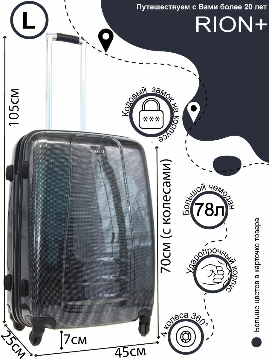 Отзывы на Чемодан Рион+ (RION+) R418, Пластик, L (70 см), 78 литра, 4 колеса, усиленный пластик, черный глянцевый