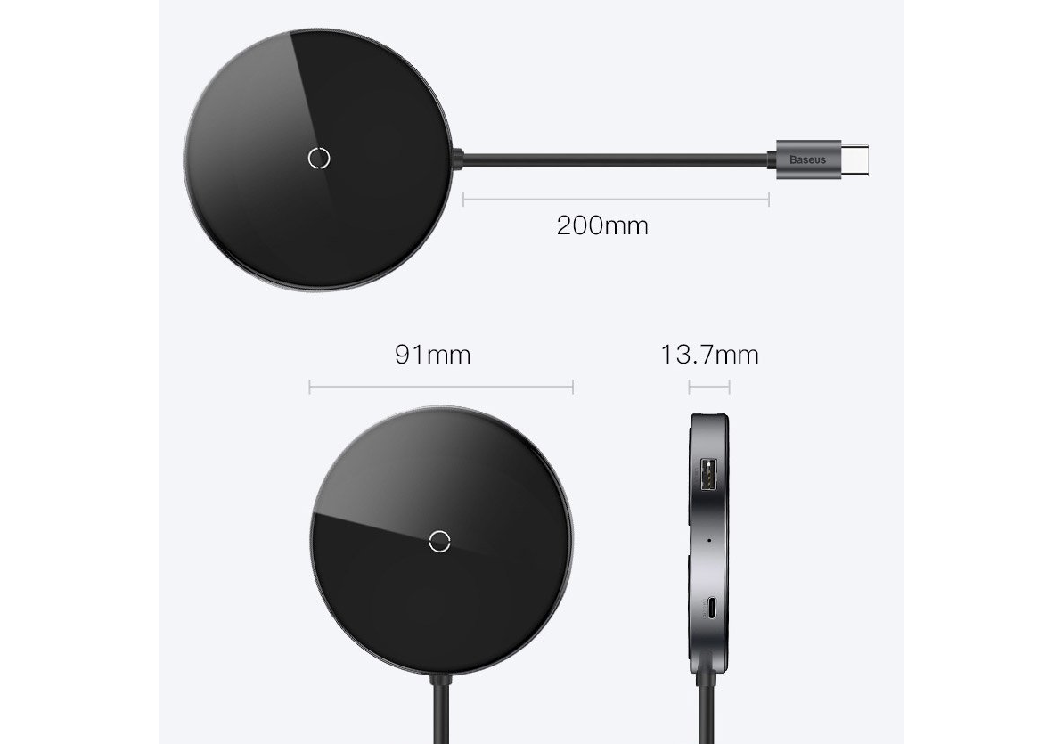 Отзывы на HUB адаптер с беспроводной зарядкой Baseus Circular Mirror Wireless Charger 6-in-1, Type-C to USB3.0*1 + USB2.0*3 + Type-C PD 60W, Черный