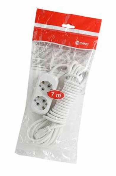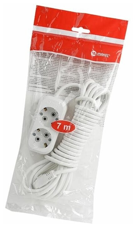 Сетевой удлинитель с заземлением MAKEL 2*7 MGP 117 на 7 метров 2 розетки 3,5 кВт 16А белый