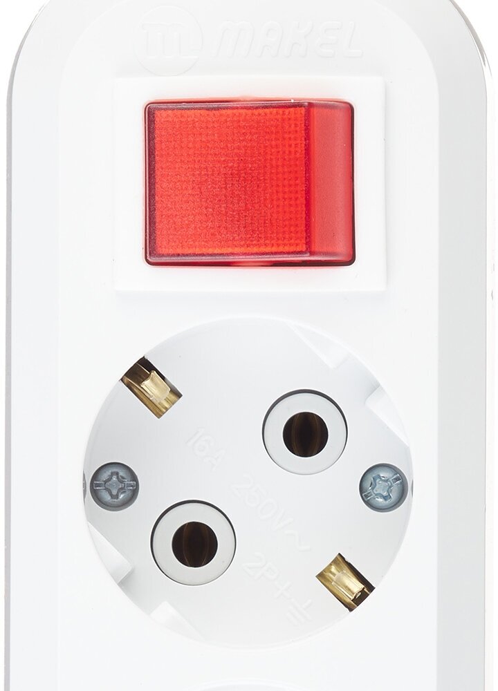 Сетевой удлинитель с заземлением и выключателем MAKEL 3*3 MGP 213 на 3 метра 3 розетки 3,5 кВт 16А белый Makel 2290-02