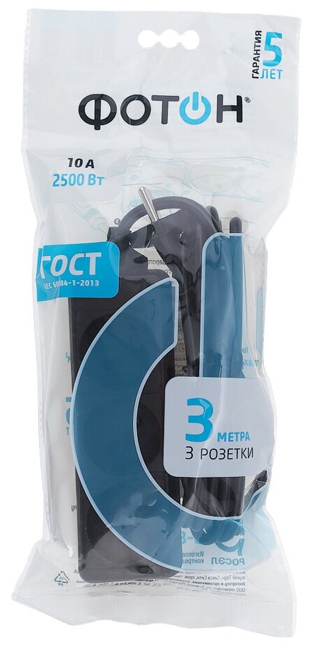Отзывы на Удлинитель сетевой "фотон" 10-33, 3м, 3 розетки, черный без заземления