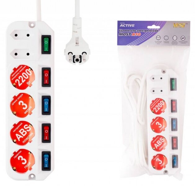 10 цен на Сетевой удлинитель Most A10 1.6м (6 розеток), белый